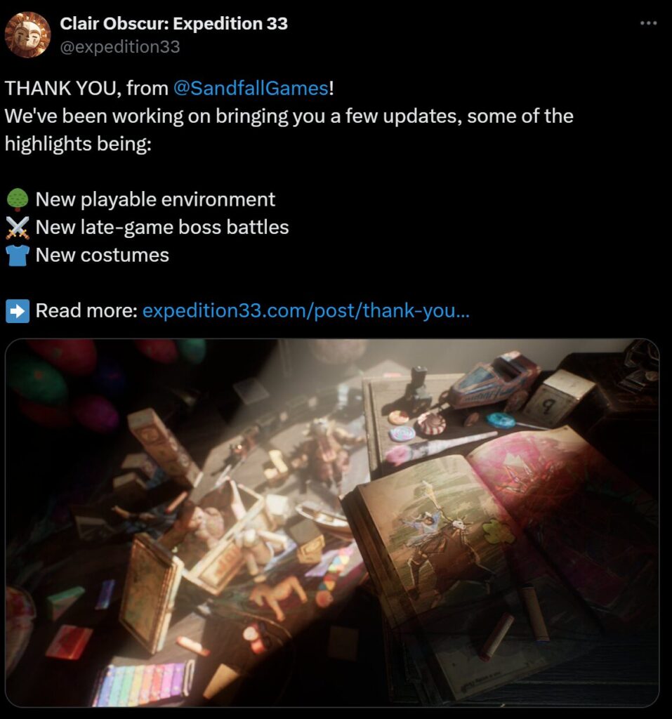 The new Clair Obscur Expedition 33 update is on the way, and it will be free for all players. Developer Sandfall Interactive confirmed that the RPG, which has sold over five million copies, will soon receive additional content as a thank-you to the community.