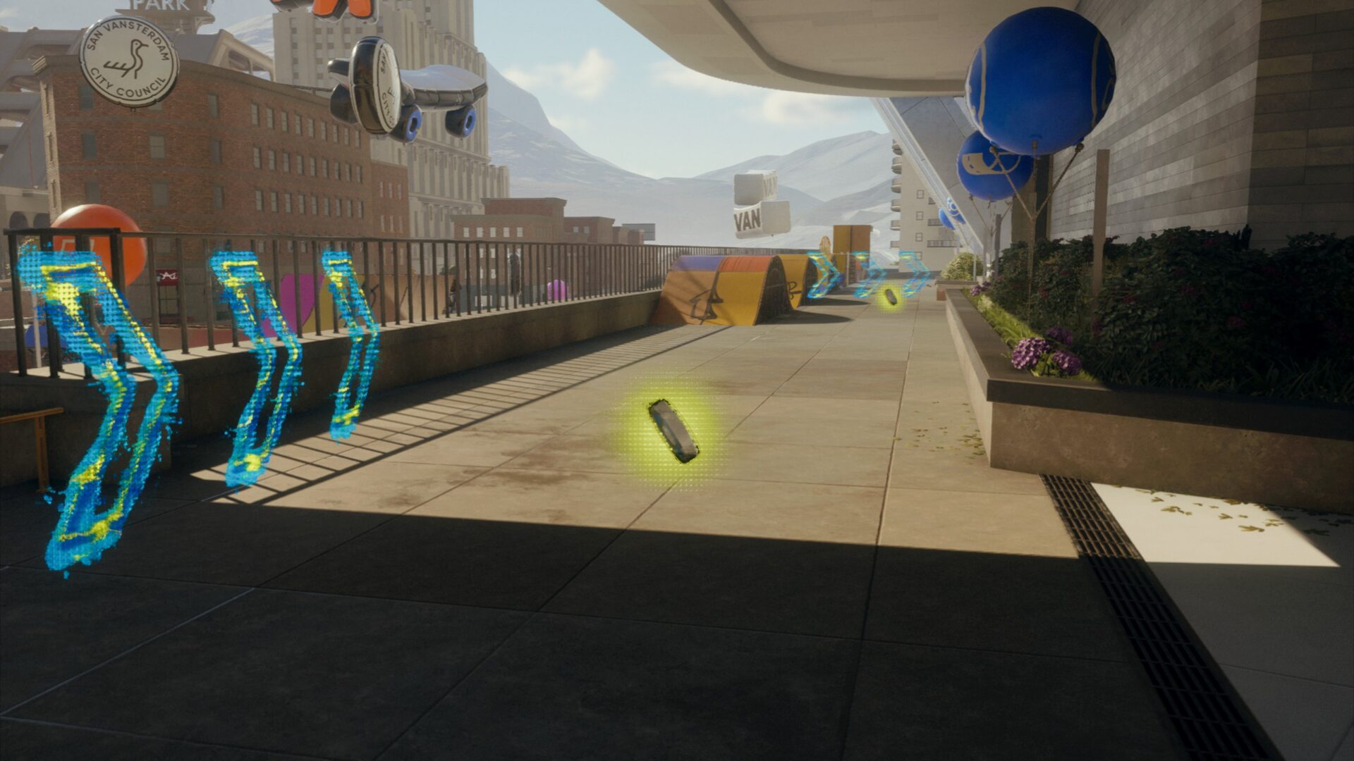Skate nails the look and feel of a vibrant skate world. The visuals are clean and colorful, with great lighting that brings each environment to life. Performance is stable, with a consistently high framerate, even during more chaotic moments. Sure, you might notice a texture or two loading in a bit late when speeding through areas, but it’s a minor issue in an otherwise polished presentation.